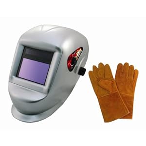Includes 8077 - Deluxe Solar Auto-Darkening Welding Helmet with Bigger Observation Window and 8085 - 13-1/2-inch Leather Welding Gloves